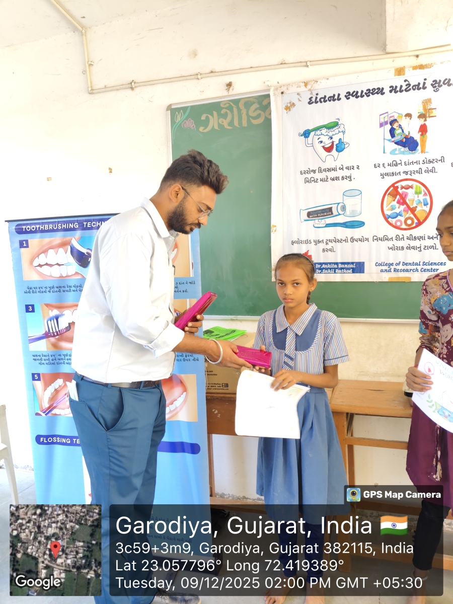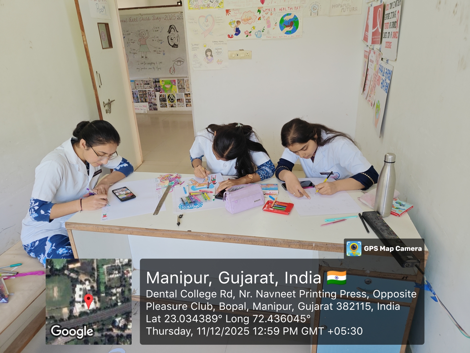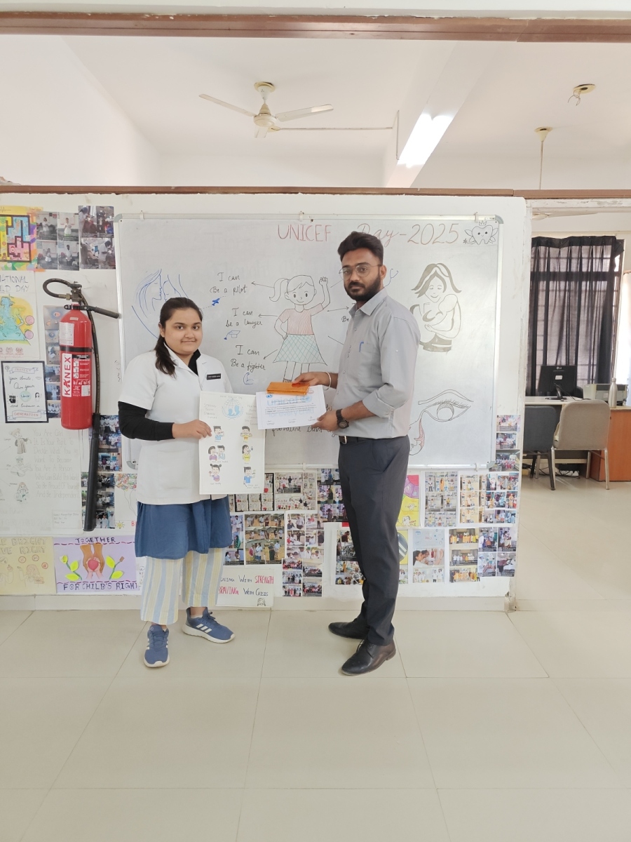A school outreach programme was conducted, which included an oral health awareness session, distribution of oral hygiene kits, and a drawing competition to encourage understanding of oral health and child rights. Additionally, a college-level drawing competition was organized to provide students with a platform to creatively express their views on child rights and well-being.