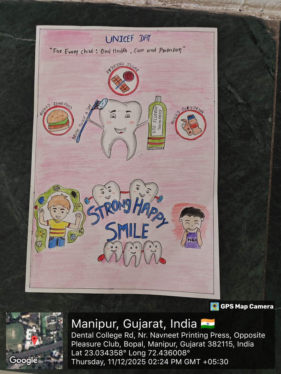 The Department of Public Health Dentistry observed UNICEF Day with the theme “My Day, My Rights” by organizing academic and outreach activities focused on promoting awareness of children’s rights and health.